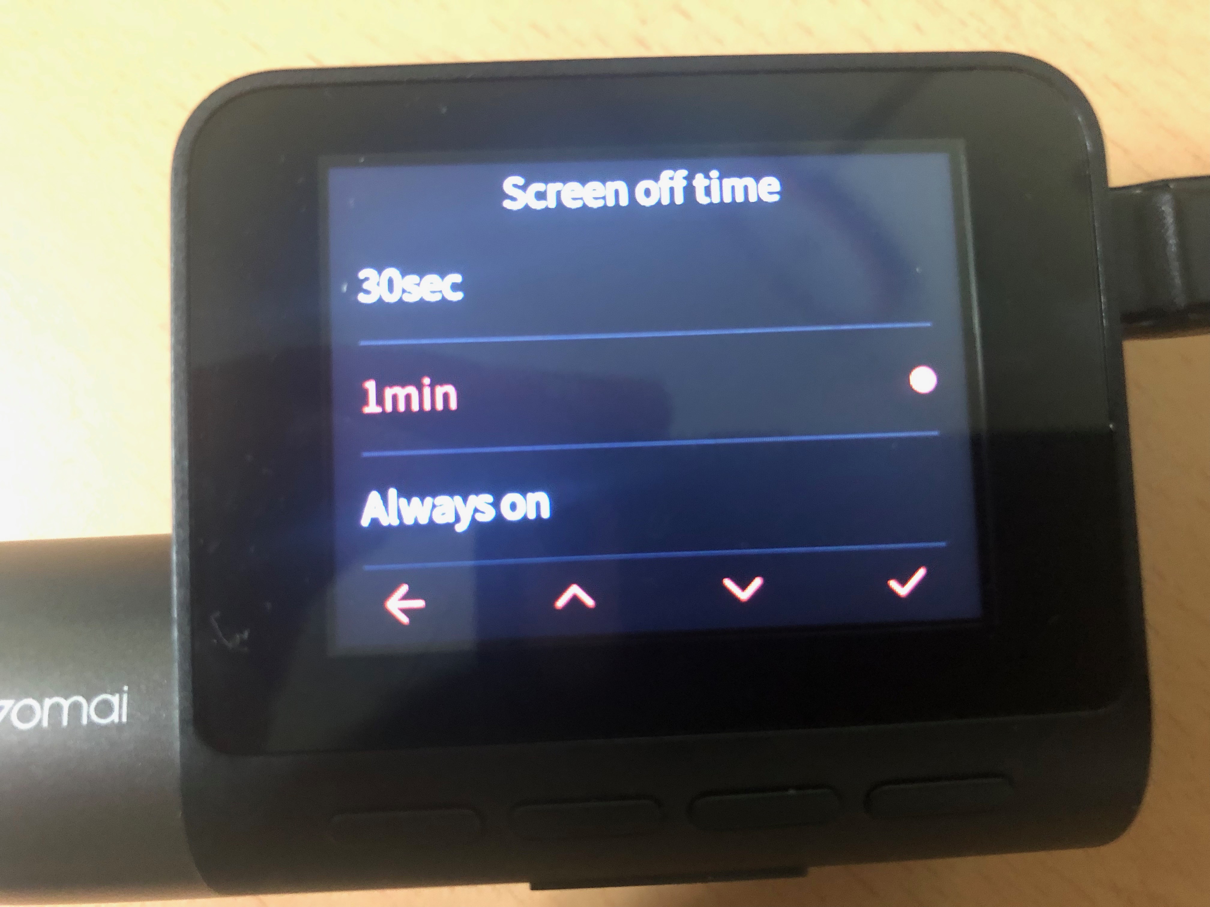 - 기본 1분으로 설정되어 있으며, 30초, 1분, 항상 켜짐 중에서 선택하여 설정 가능하다.