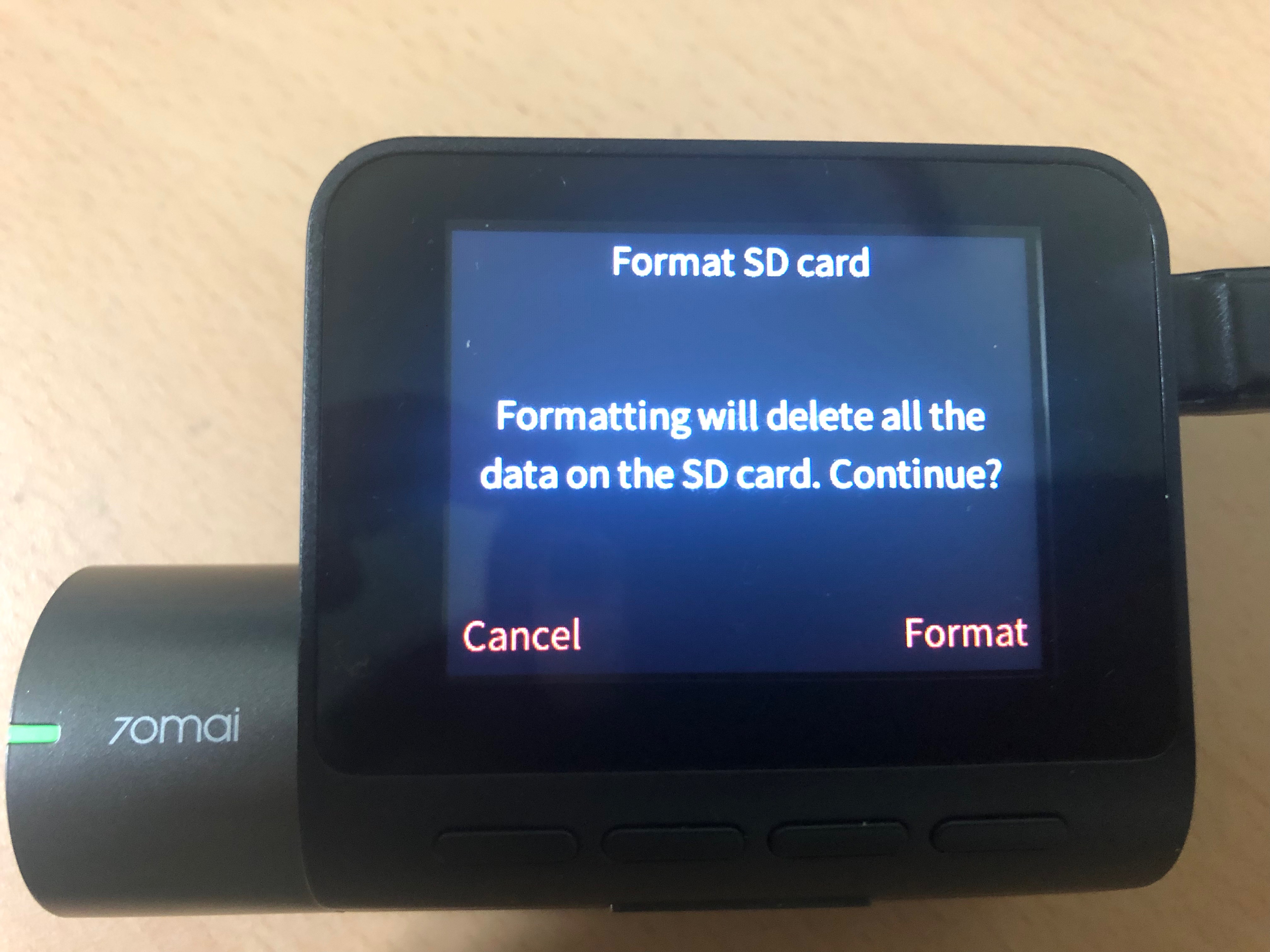 - 설정 -> Format SD card