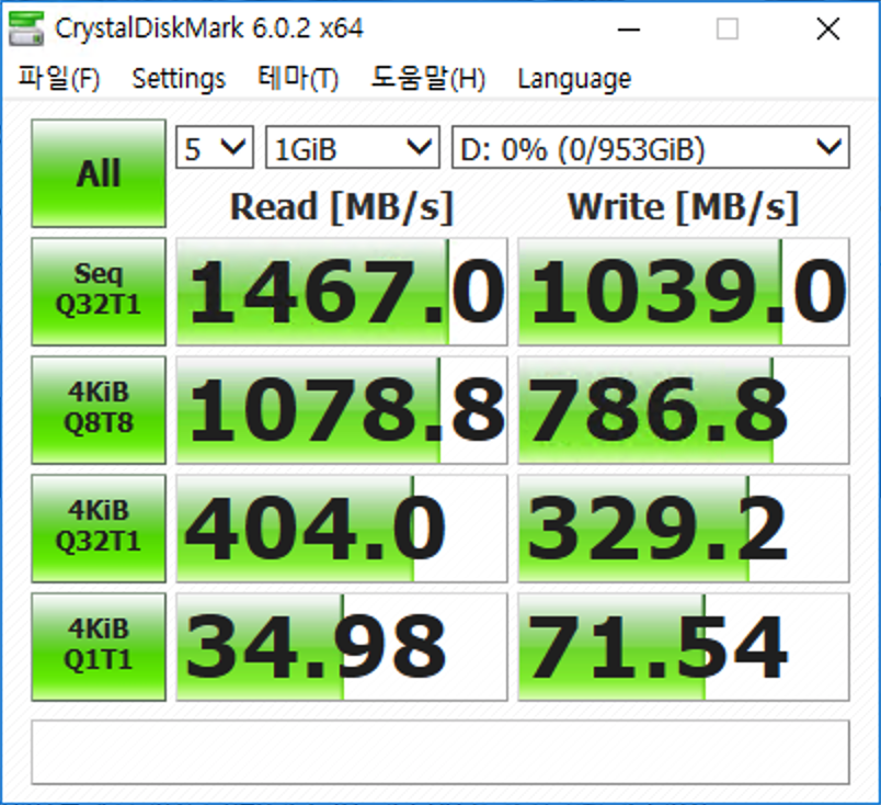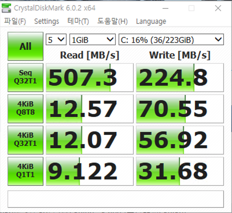 - OS 깔아서 사용하고 있는 WD Green 3D 240G 벤치 정보 참고
