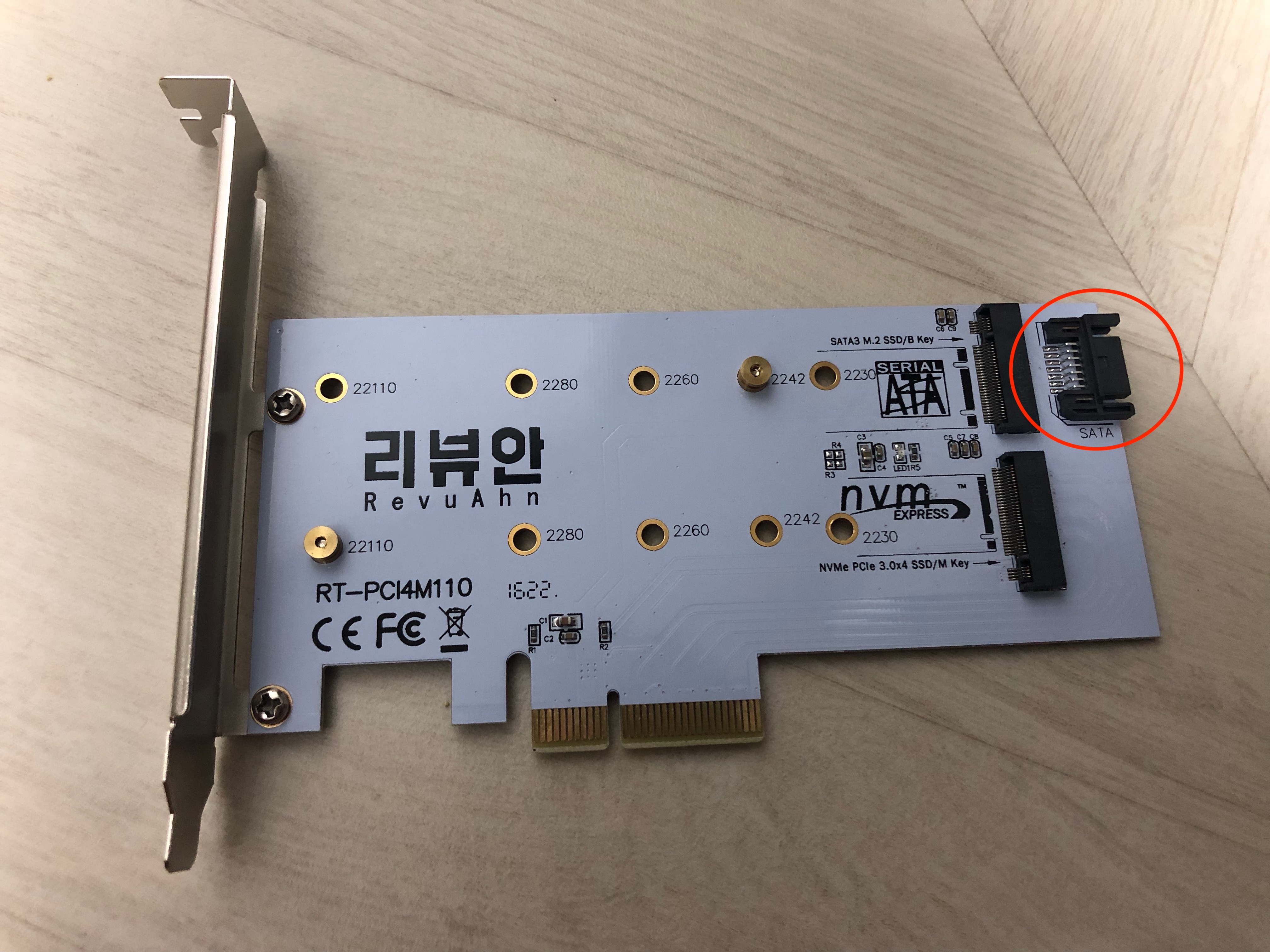 - SATA 타입인 경우 옆의 SATA 포트와 메인보드의 SATA 포트와 케이블 연결 필요함