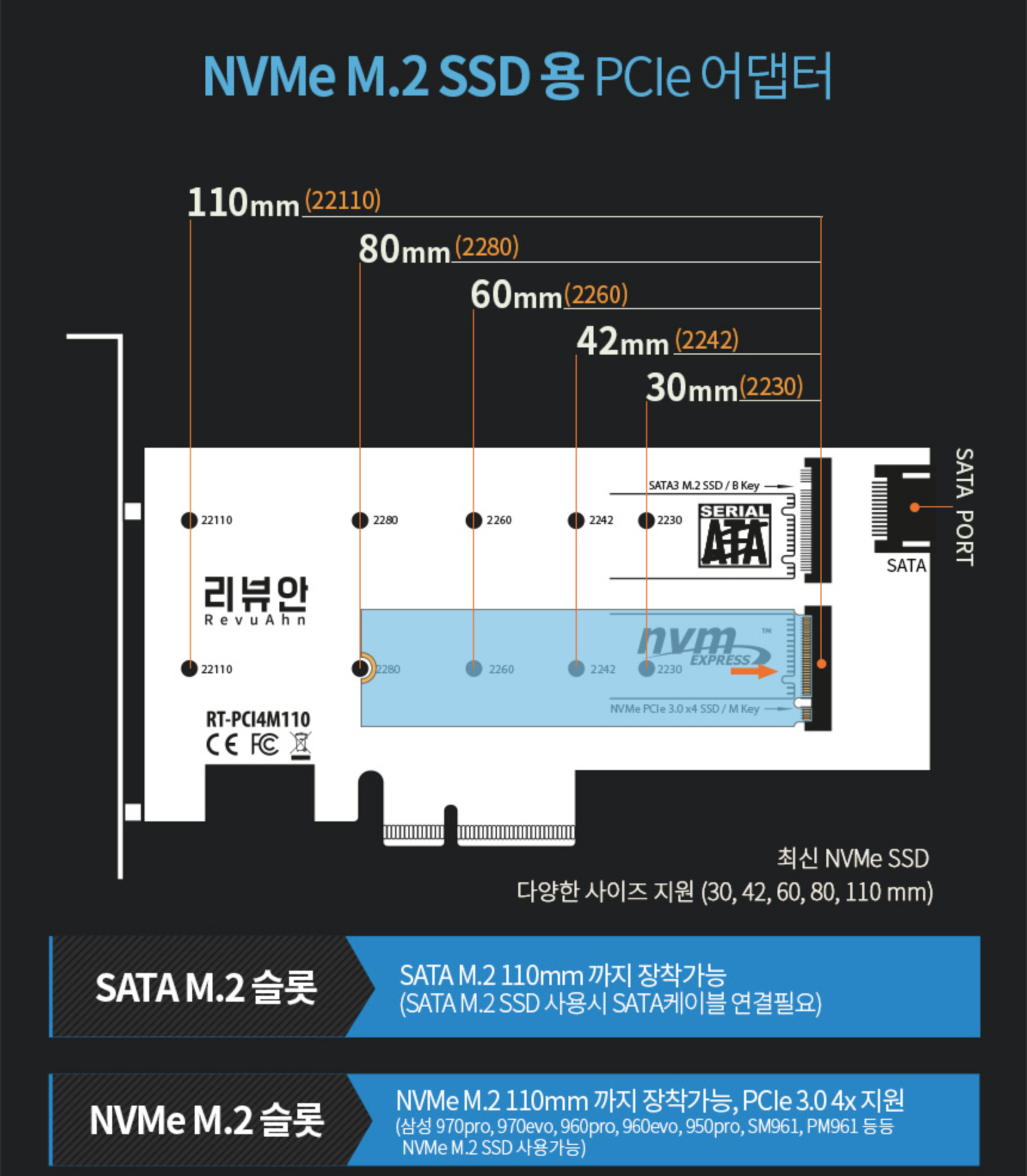 리뷰안 nvme m.2 ssd pcie 어댑터 PCI4M110 : 리뷰안