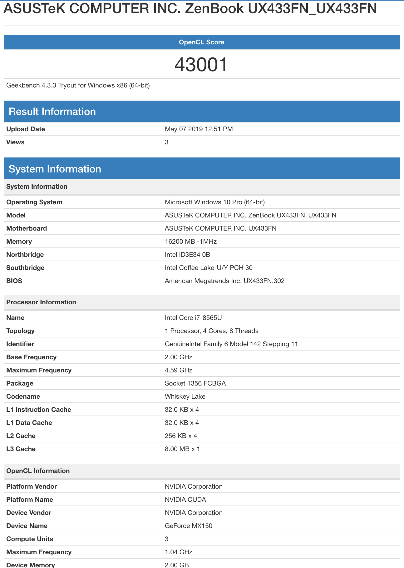 ASUSTeK COMPUTER INC. ZenBook UX433FN_UX433FN - Geekbench Browser