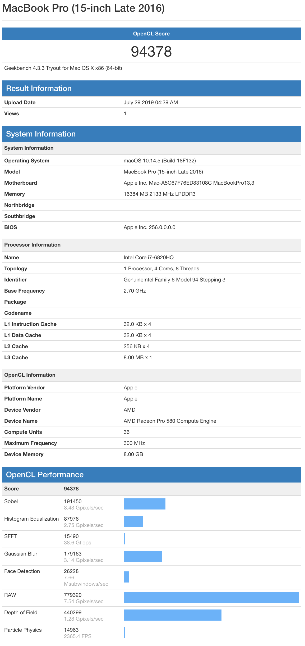 | [geekbench] 맥북 프로 (15인치 Late 2016) CTO + RX470 (eGPU) 긱벤치 정보 (0) | 2019.07.29 |