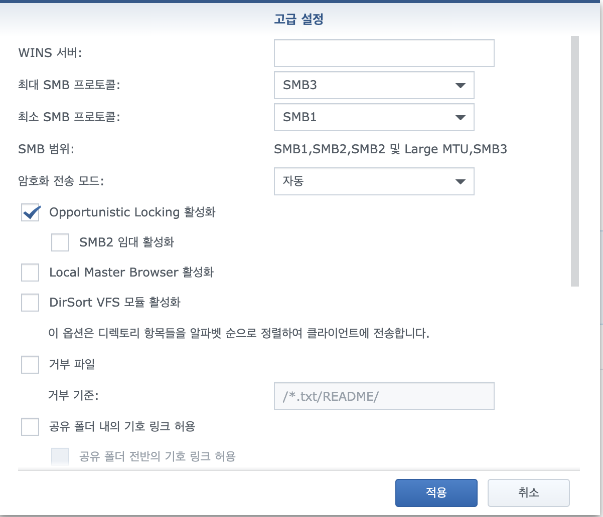 | [시놀로지] 삼바 (Samba) 설정하기 (0) | 2020.04.10 |